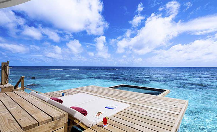18间高级水上别墅每间可以同时入住3个成人或者是2个成人和一个小孩。共87平方米的居住空间,提供一个大床(或者2个单人床)卧室,以及独立区域的客厅,洗手间配有个人的按摩浴缸和花洒淋浴系统。可以升级为岛屿俱乐部和享用岛屿俱乐部专有设施。