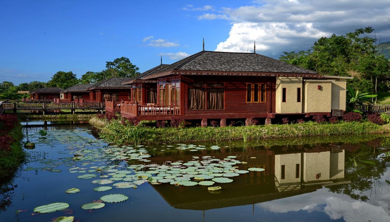 茵莱湖绿萝宫度假村,总共有74间湖上或者水岸别墅,毗邻茵莱湖(Inle Lake)和良丹瑞(Nyaung Shwe)的南部。所有的别墅都有独立的休息室,别墅内可以欣赏到缅甸茵莱湖的自然奇观和宁静景色。所有的别墅内设基本一致,均带有独立的私人室外露台和日光浴床。室内装饰采用柔软,舒缓的色调,将缅甸特色融入在建筑当中。