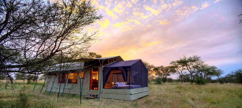 酒店所有帐篷的风格和氛围都相呼应,露台可欣赏到广阔的塞伦盖蒂平原的全景。下午,您可以在餐厅的扶手椅上放松身心,或在周围树木的树荫下舒适地观看游猎和动物。当黑夜降临时,酒店会在餐厅帐篷里或在酒店附近的小空地上给您安排晚餐。伴随着闪闪发亮的星空、风声扫过灌木和丛林沙沙作响、动物在营地附近觅食的声音,在酒店为你准备的柔软的床榻安眠入睡。