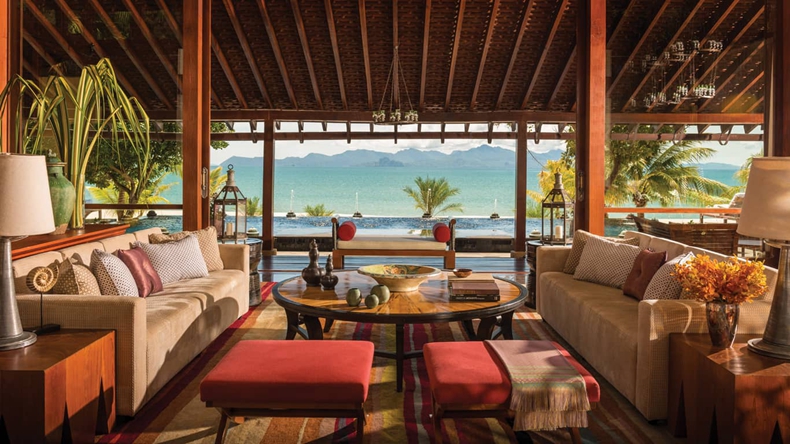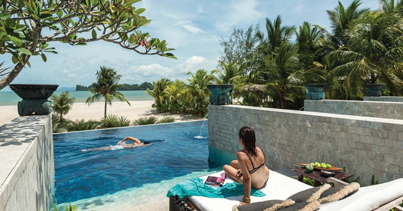 可邀请闺蜜到您的私人水疗护理区举行单身女郎派对,而召开男士单身派对则有 14 米长的海滨无边际泳池供您选择。邀齐亲朋好友在宽敞的起居区度过亲密的电影之夜,或在专享池畔平台举行一场卡拉 OK 竞赛。这幢宏伟的别墅经过精心设计,是举行聚会或家庭休憩的理想胜地:无论是庆祝晚宴和纪念性聚会,还是静享品质时光或观看精彩的联合国教科文地质公园纪录片,都是让您永远铭记的美好回忆。您下榻的双卧居所位于足有一英里长的沙滩的尽头,犹如世外桃源一般。别墅采用村落风格设计,横跨三座亭楼,是最优质马来式工匠技艺与现代化便利的完美平衡。客房亭楼分列两侧,各自配有私人露台、独立水疗间及豪华的主浴缸。中央招待和起居亭楼是共度美好时光的绝佳所在,室内配有十人座的餐桌、休息区、大型泳池、完备的储藏室以及免费侍役服务。