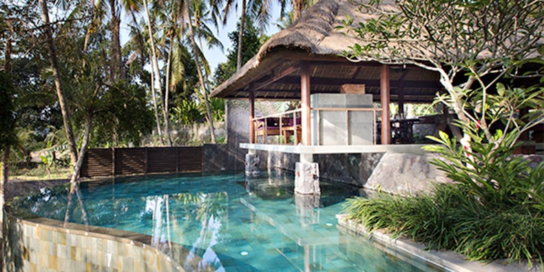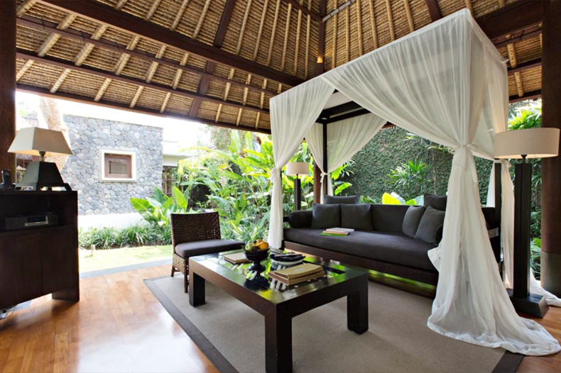 豪华别墅是酒店新建的别墅,于2008年正式完工。别墅依然区分了生活起居空间与卧室。别墅内所有的线条与室内色彩的运用都是摩登又现代。 卧室空间小巧迷人,处处都以暖黄灯光加以点缀,大床上布置了雪白的纺纱,而巴厘岛传统的藤木屋顶则更是体现出特别的巴厘岛情调。 山石堆砌、郁林环绕的淋浴区充分和大自然融合在一起,让宾客感受原始大自然的美景意境。