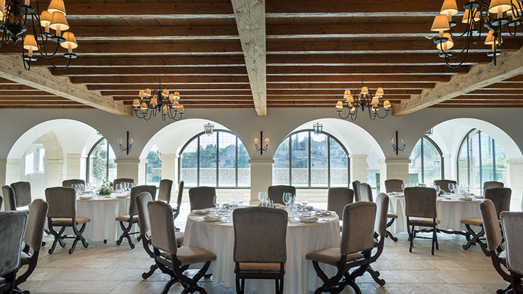 城堡餐厅提供传统的普罗旺斯美食。您可以在露台餐厅俯瞰到我们到山谷美景,日落山下时的美景会让您难以忘怀,而拱形门室内餐厅的典雅装饰同样也能吸引到您。