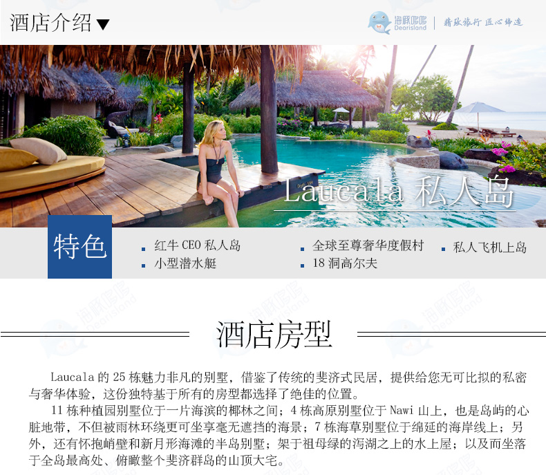 【至尊奢华】 斐济Laucala私人岛+洲际8天6晚度假 商务舱